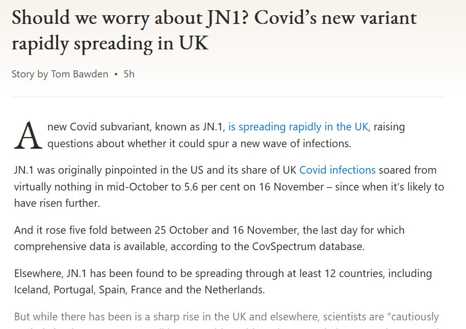 NO HAY PERO HAY (EN INGLÉS) ¿Deberíamos preocuparnos por JN1? La nueva variante de Covid se propaga rápidamente en el Reino Unido Posted on noviembre 26, 2023 por coronado https://www.msn.com/en-gb/health/other/should-we-worry-about-jn1-covid-s-new-variant-rapidly-spreading-in-uk/ar-AA1kxtfz
