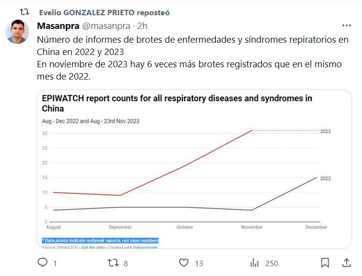 CEROCOVIDZERO Número de informes de brotes de enfermedades y síndromes repiratorios en China en 2022 y 2023 En noviembre de 2023 hay 6 veces más brotes registrados que en el mismo mes de 2022