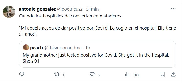 GERONTOCIDIO SILENCIOSO Cuando los hospitales de convierten en mataderos. «Mi abuela acaba de dar positivo por Covid. Lo cogió en el hospital. Ella tiene 91 años». Posted on noviembre 27, 2023 por coronado