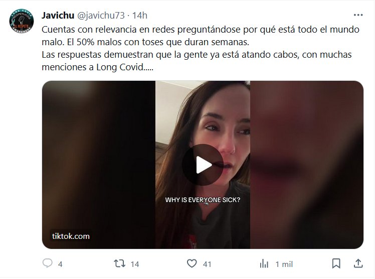 TESTIMONIOS Cuentas con relevancia en redes preguntándose por qué está todo el mundo malo. El 50% malos con toses que duran semanas. Las respuestas demuestran que la gente ya está atando cabos, con muchas menciones a Long Covid…..