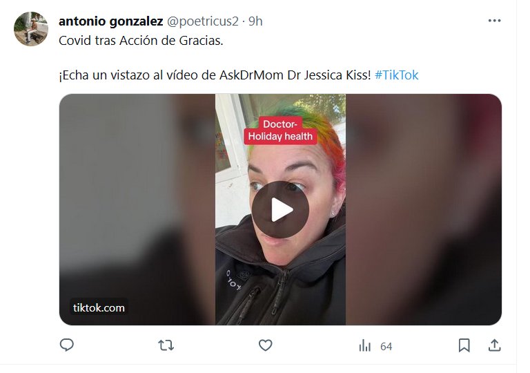 FIN DE PANDEMIA? Covid tras Acción de Gracias Posted on noviembre 28, 2023 por coronado https://www.tiktok.com/@askdrmom/video/7305545121162988842?_t=8hj8Y8Awf4q&_r=1