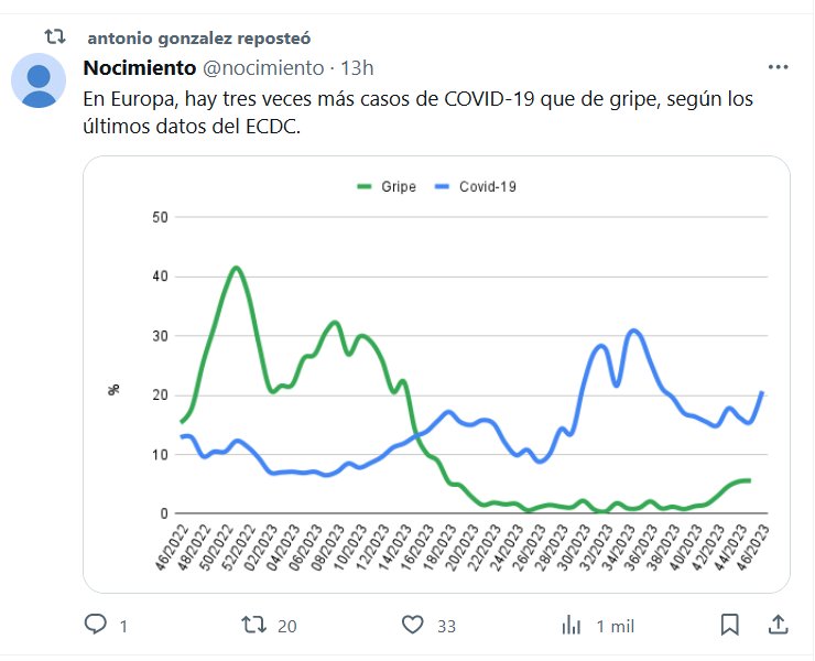 LA GRIPALIZACIÓN TIENE PROBLEMAS CON LA REALIDAD En Europa, hay tres veces más casos de COVID-19 que de gripe, según los últimos datos del ECDC Posted on noviembre 28, 2023 por coronado