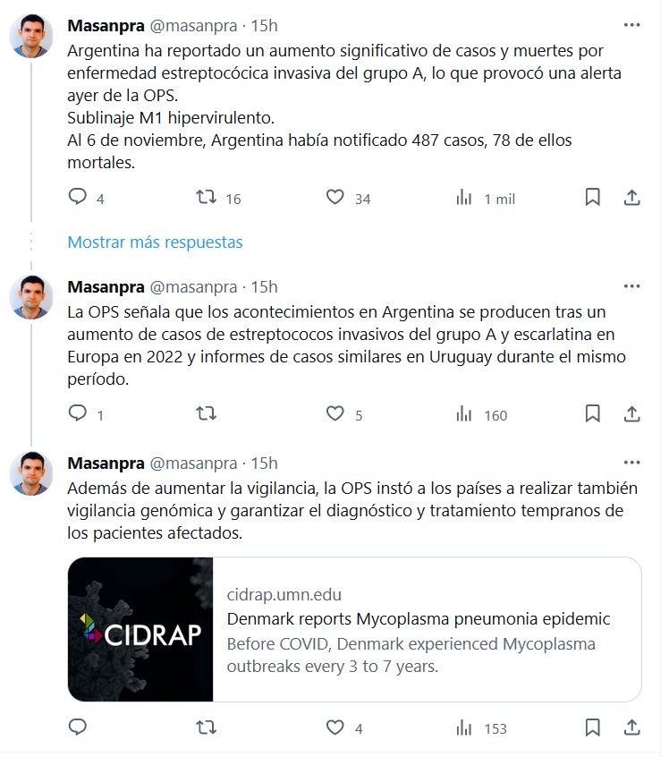 COVID DESTRUYE EL SISTEMA INMUNOLÓGICO Y LUEGO POSTCOVID HACE ESTRAGOS Argentina ha reportado un aumento significativo de casos y muertes por enfermedad estreptocócica invasiva del grupo A, lo que provocó una alerta ayer de la OPS. Sublinaje M1 hipervirulento. Al 6 de noviembre, Argentina había notificado 487 casos, 78 de ellos mortales.