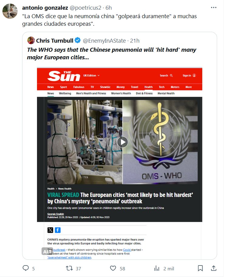 PARAPANDEMIA-SS / POSTCOVID «La OMS dice que la neumonía china «golpeará duramente» a muchas grandes ciudades europeas» Posted on diciembre 1, 2023 por coronado