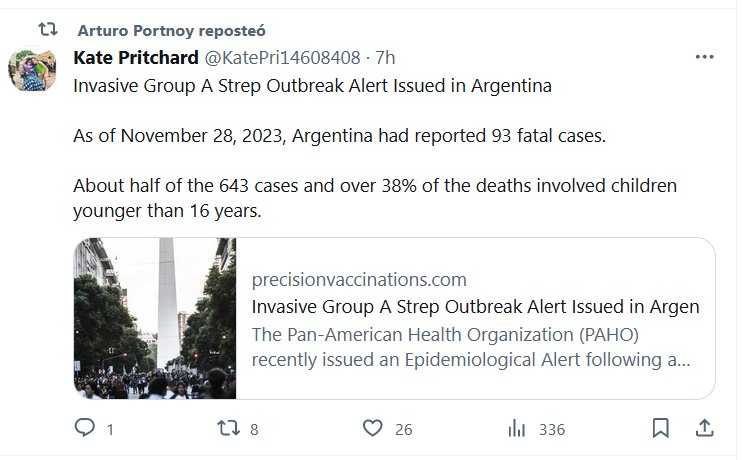 PARAPANDEMIA-SS (TENGO QUE LEER SOBRE MI PAÍS EN INGLÉS!) Emiten alerta sobre brote de estreptococos invasivos del grupo A en Argentina Al 28 de noviembre de 2023, Argentina había reportado 93 casos fatales. Aproximadamente la mitad de los 643 casos y más del 38% de las muertes afectaron a niños menores de 16 años
