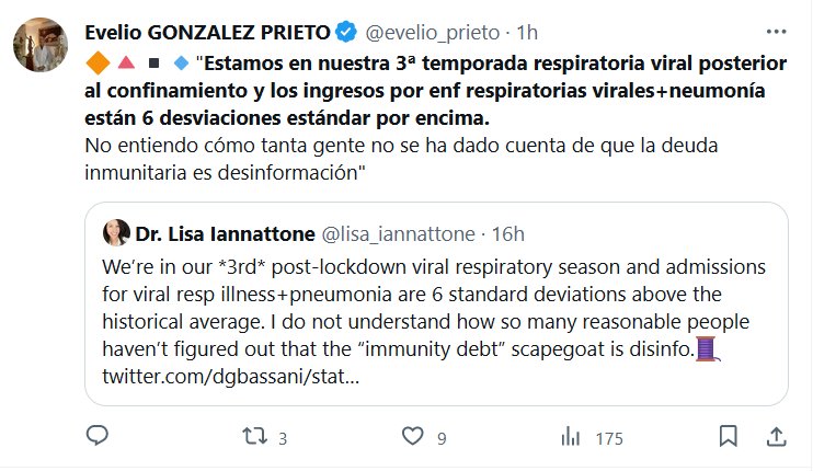 🔶🔺▪️🔹»Estamos en nuestra 3ª temporada respiratoria viral posterior al confinamiento y los ingresos por enf respiratorias virales+neumonía están 6 desviaciones estándar por encima. No entiendo cómo tanta gente no se ha dado cuenta de que la deuda inmunitaria es desinformación»