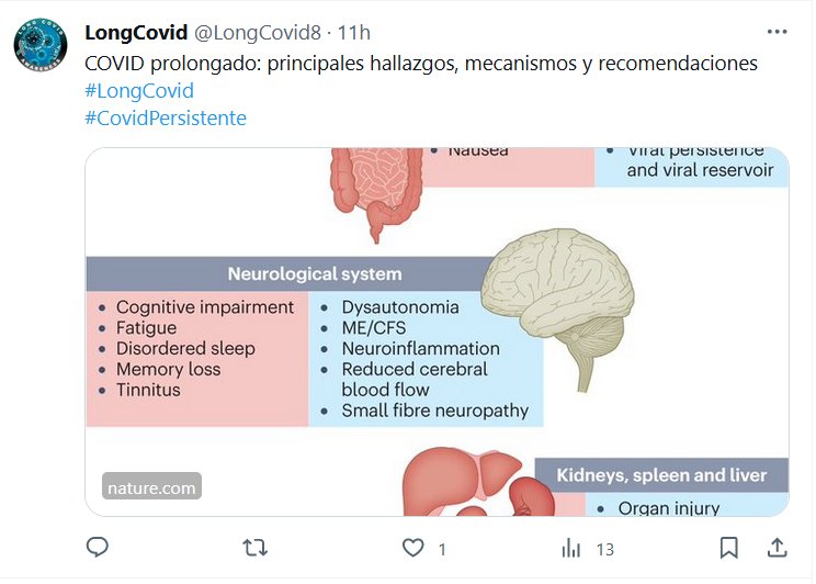 LongCovid @LongCovid8 COVID prolongado: principales hallazgos, mecanismos y recomendaciones #LongCovid #CovidPersistente Posted on diciembre 2, 2023 por coronado https://www.nature.com/articles/s41579-022-00846-2