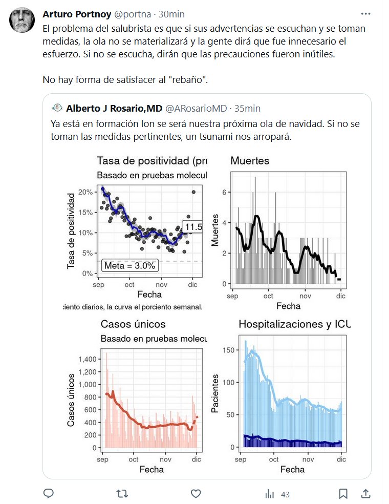 MANADA COVIDIOTA Y SU MAL PASTOR El problema del salubrista es que si sus advertencias se escuchan y se toman medidas, la ola no se materializará y la gente dirá que fue innecesario el esfuerzo. Si no se escucha, dirán que las precauciones fueron inútiles. No hay forma de satisfacer al «rebaño»