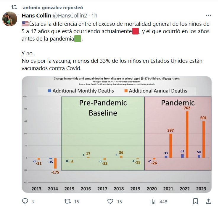 COVID MATA 🇺🇲Ésta es la diferencia entre el exceso de mortalidad general de los niños de 5 a 17 años que está ocurriendo actualmente🟥, y el que ocurrió en los años antes de la pandemia🟩.