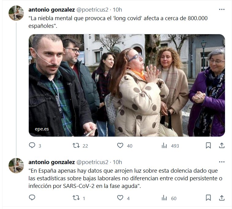 «La niebla mental que provoca el ‘long covid’ afecta a cerca de 800.000 españoles» «En España apenas hay datos que arrojen luz sobre esta dolencia dado que las estadísticas sobre bajas laborales no diferencian entre covid persistente o infección por SARS-CoV-2 en la fase aguda»