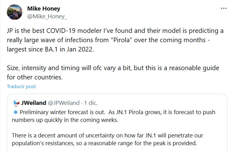 Viene una ola grande de COVID. Pirola. Que cada quien haga lo que quiera con esa información Posted on diciembre 7, 2023 por coronado
