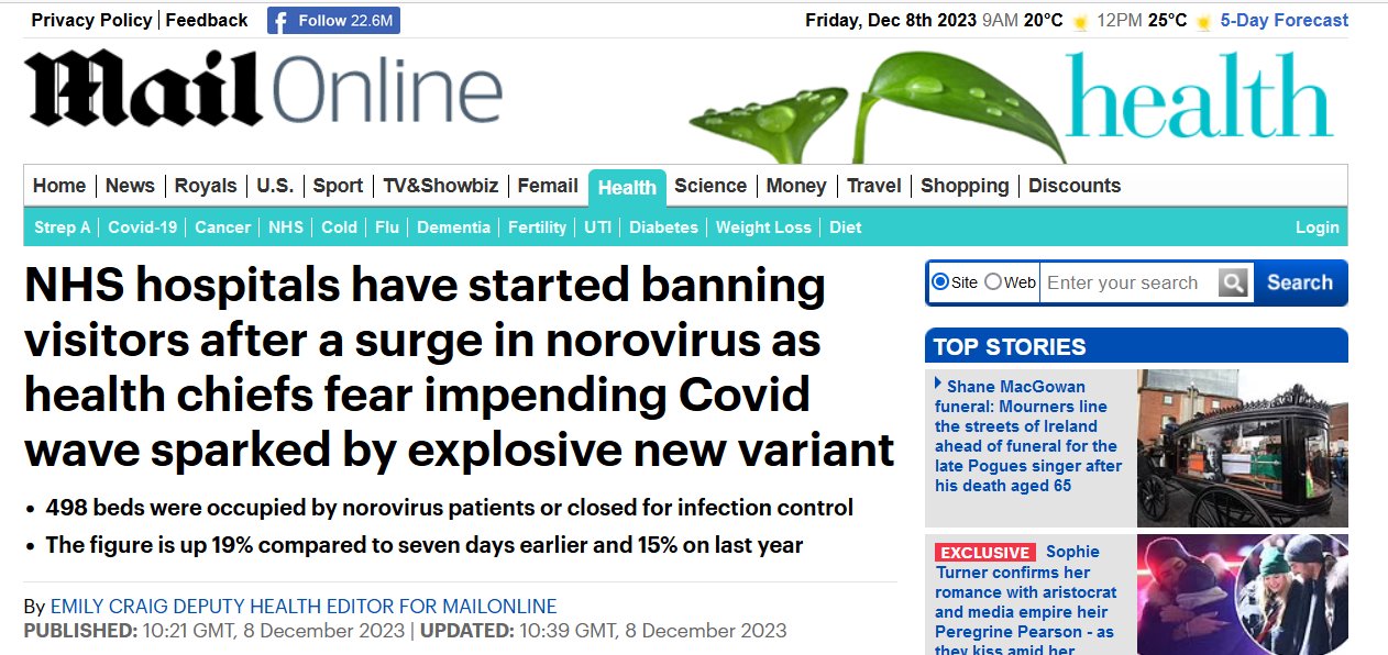 EN INGLÉS Los hospitales del NHS comenzaron a prohibir los visitantes después de un aumento en el norovirus, ya que los jefes de salud temen una inminente ola de Covid provocada por una nueva variante explosiva
