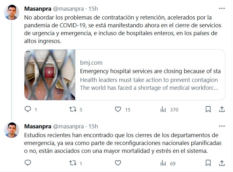 No abordar los problemas de contratación y retención, acelerados por la pandemia de COVID-19, se está manifestando ahora en el cierre de servicios de urgencia y emergencia, e incluso de hospitales enteros, en los países de altos ingresos