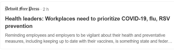 EN INGLÉS Líderes sanitarios: los lugares de trabajo deben priorizar la prevención de la COVID-19, la gripe y el VRS Posted on diciembre 9, 2023 por coronado https://www.freep.com/restricted/?return=https%3A%2F%2Fwww.freep.com%2Fstory%2Fmoney%2Fbusiness%2Fcolumnists%2Fcarol-cain%2F2023%2F12%2F09%2Fdoctors-workplaces-need-to-prioritize-covid-19-flu-prevention%2F71823056007%2F
