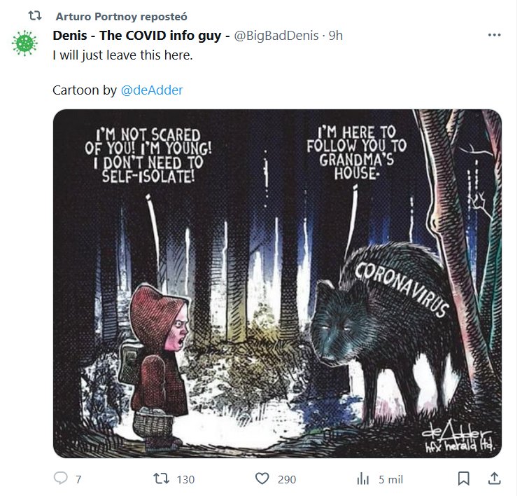 ENGLISH CARTOON > – CAPERUCITA: NO TE TENGO MIEDO, SOY JOVEN, NO VOY A AISLARME – EL LOBO CORONAVIRUS: ESTOY AQUÍ PARA SEGUIRTE HASTA LA CASA DE TU ABUELA Posted on diciembre 9, 2023 por coronado