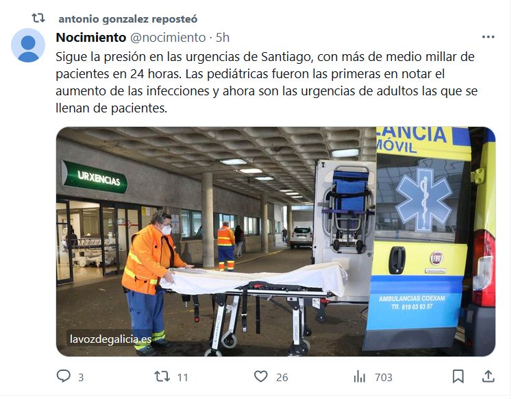 ESPAÑA Sigue la presión en las urgencias de Santiago, con más de medio millar de pacientes en 24 horas. Las pediátricas fueron las primeras en notar el aumento de las infecciones y ahora son las urgencias de adultos las que se llenan de pacientes