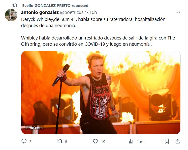 LOS COVIDIOTAS LE LLAMAN «RESFRIADO» Deryck Whibley,de Sum 41, habla sobre su «aterradora’ hospitalización después de una neumonía. Whibley había desarrollado un resfriado después de salir de la gira con The Offspring, pero se convirtió en COVID-19 y luego en neumonía’