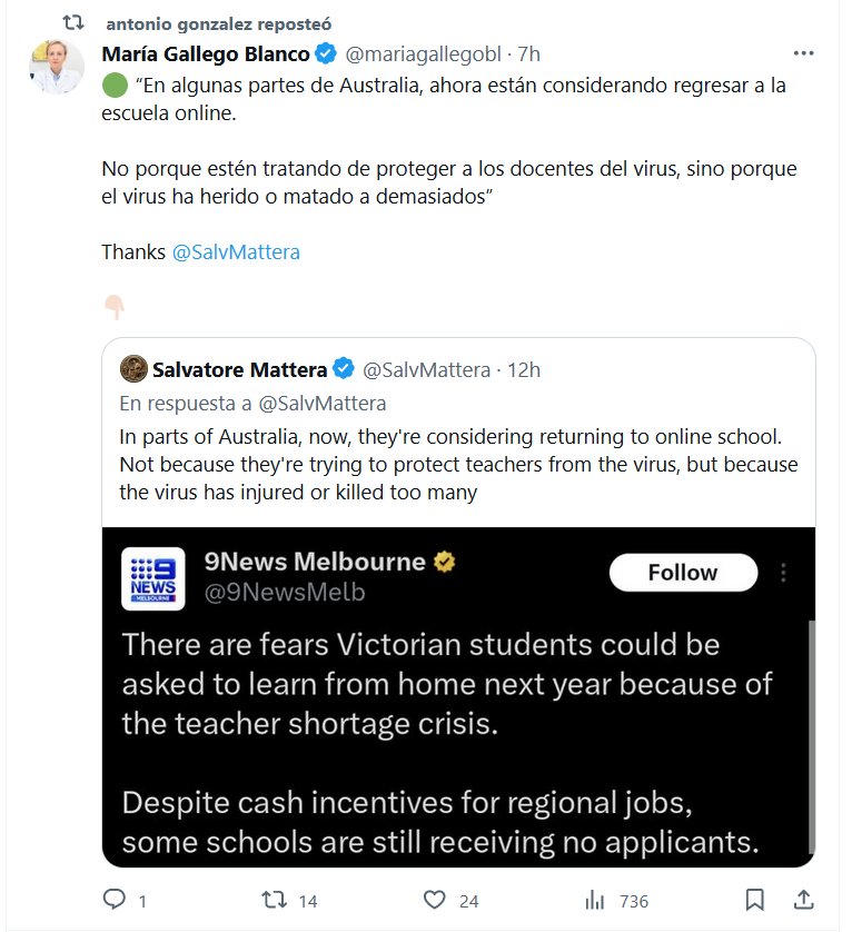 🟢 “En algunas partes de Australia, ahora están considerando regresar a la escuela online. No porque estén tratando de proteger a los docentes del virus, sino porque el virus ha herido o matado a demasiados”