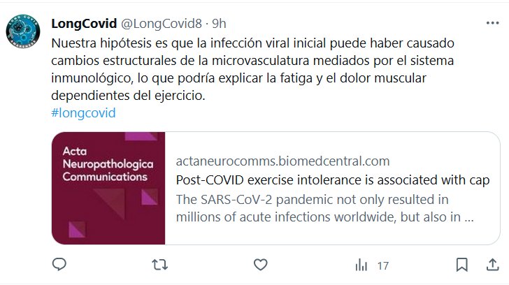 Nuestra hipótesis es que la infección viral inicial puede haber causado cambios estructurales de la microvasculatura mediados por el sistema inmunológico, lo que podría explicar la fatiga y el dolor muscular dependientes del ejercicio. #longcovid