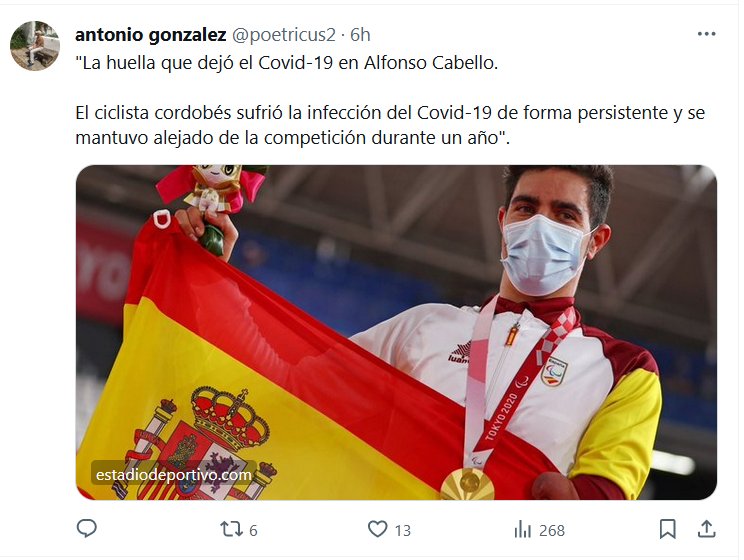 NO ES LEVE Y SÍ AFECTA A JÓVENES SANOS «La huella que dejó el Covid-19 en Alfonso Cabello. El ciclista cordobés sufrió la infección del Covid-19 de forma persistente y se mantuvo alejado de la competición durante un año».