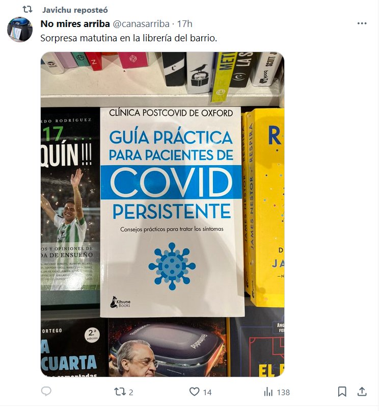 Sorpresa matutina en la librería del barrio: GUÍA PRÁCTICA PARA PACIENTES DE COVID PERSISTENTE Posted on diciembre 15, 2023 por coronado COMO ENFERMEDAD NO ERA LEVE, PERO COMO NEGOCIO SÍ QUE FUE GRANDE!