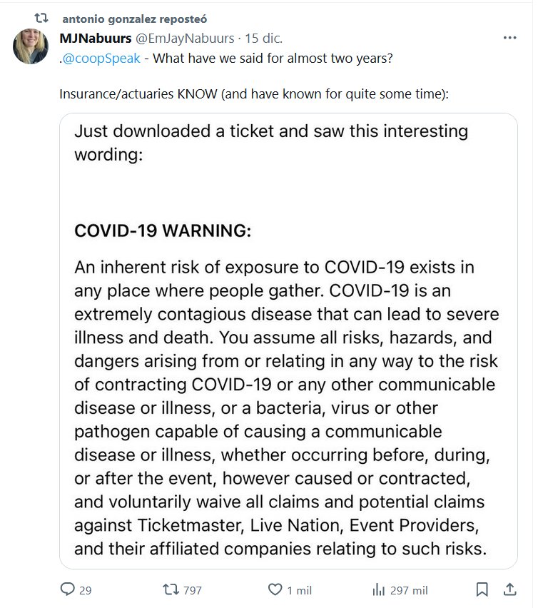 EN INGLÉS ¿Qué hemos dicho durante casi dos años? Los seguros/actuarios SABEN (y lo saben desde hace bastante tiempo): COVID ESTÁ EN TODOS LADOS Y ES PELIGROSO Posted on diciembre 16, 2023 por coronado