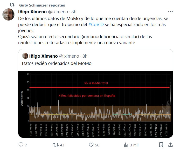 De los últimos datos de MoMo y de lo que me cuentan desde urgencias, se puede deducir que el tropismo del #CoVID se ha especializado en los más jóvenes. Quizá sea un efecto secundario (inmunodeficiencia o similar) de las reinfecciones reiteradas o simplemente una nueva variante.