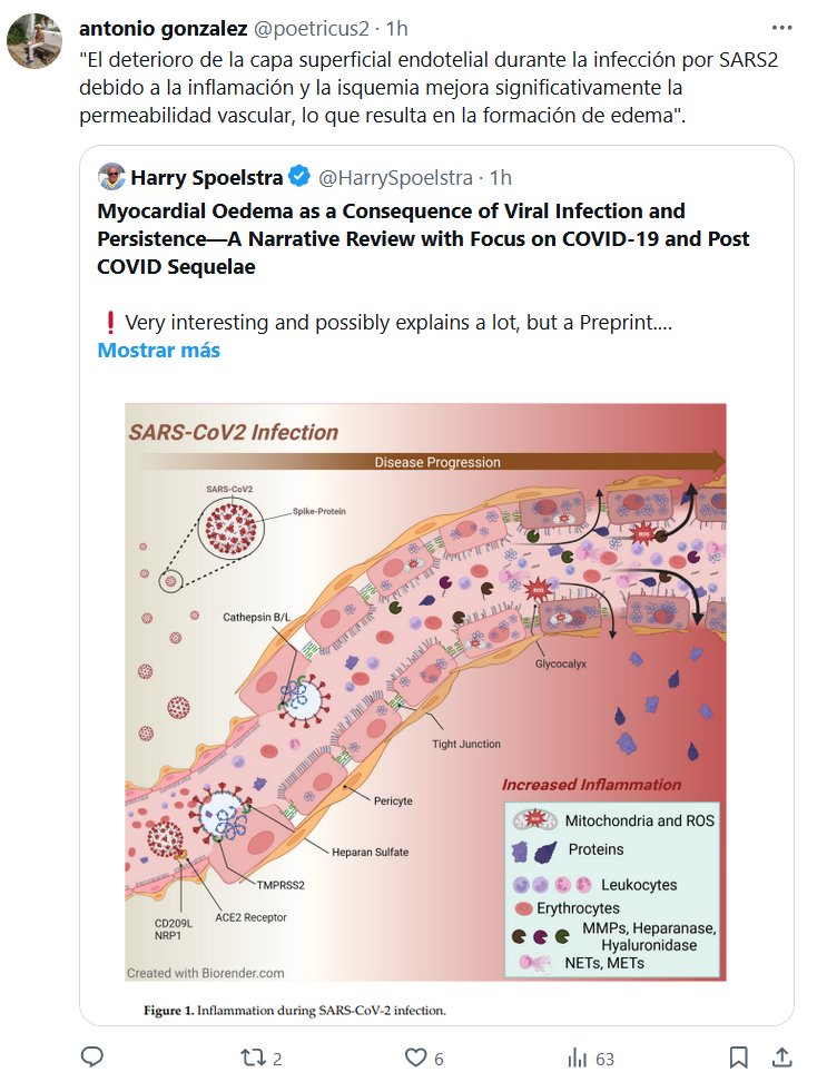 «El deterioro de la capa superficial endotelial durante la infección por SARS2 debido a la inflamación y la isquemia mejora significativamente la permeabilidad vascular, lo que resulta en la formación de edema»