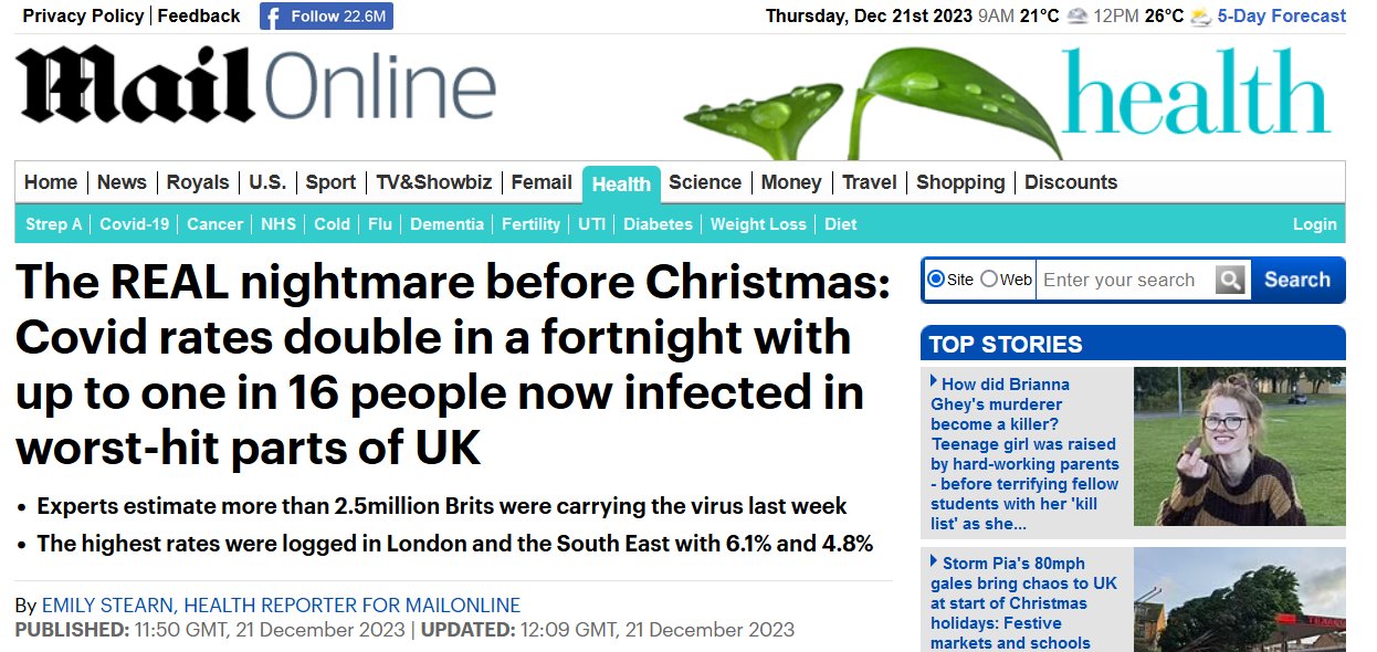 EN INGLÉS La VERDADERA pesadilla antes de Navidad: las tasas de Covid se duplican en quince días y hasta una de cada 16 personas está infectada en las zonas más afectadas del Reino Unido. Posted on diciembre 21, 2023 por coronado https://www.dailymail.co.uk/health/article-12889261/The-REAL-nightmare-Christmas-Covid-rates-double-fortnight-one-16-people-infected-worst-hit-parts-UK.html