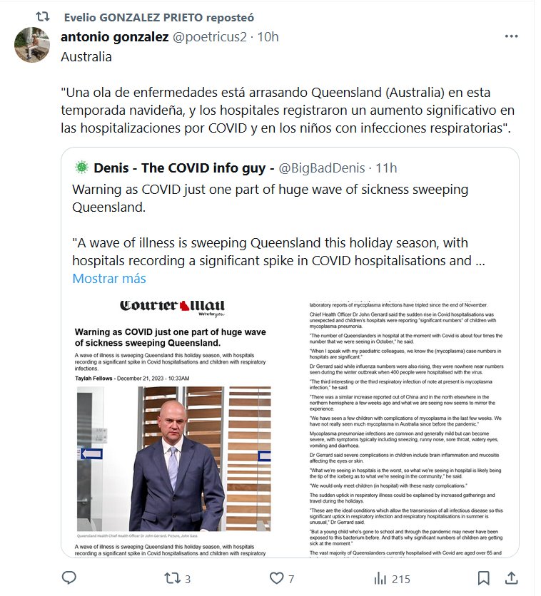 «FIN DE PANDEMIA» Australia «Una ola de enfermedades está arrasando Queensland (Australia) en esta temporada navideña, y los hospitales registraron un aumento significativo en las hospitalizaciones por COVID y en los niños con infecciones respiratorias»