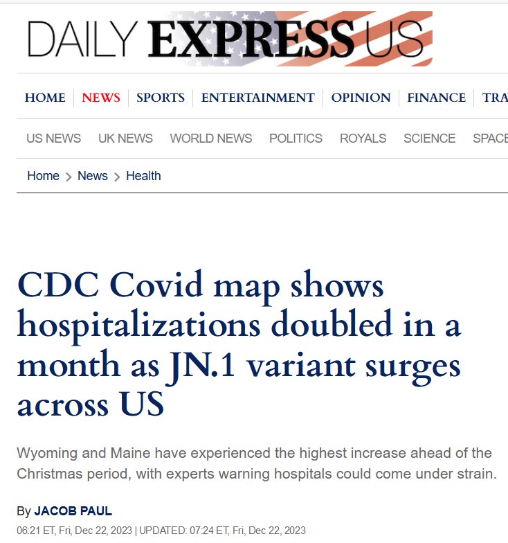 EN INGLÉS El mapa de CDC Covid muestra que las hospitalizaciones se duplicaron en un mes a medida que aumenta la variante JN.1 en EE. UU. Posted on diciembre 22, 2023 por coronado antonio gonzalez reposteó John H. Wools @gattaca2titan https://www.the-express.com/news/health/122192/covid-map-hospitalisations-jn-1-variant