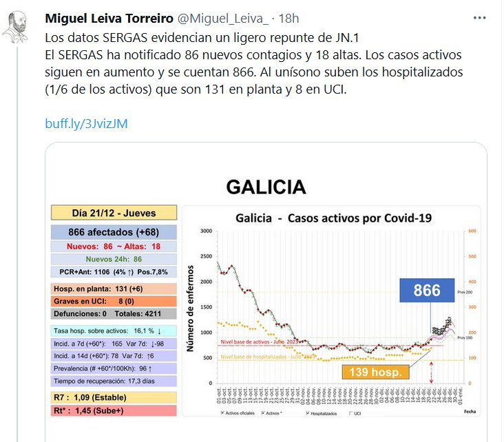 GALICIA, ESPAÑA Los datos SERGAS evidencian un ligero repunte de JN.1 Posted on diciembre 22, 2023 por coronado