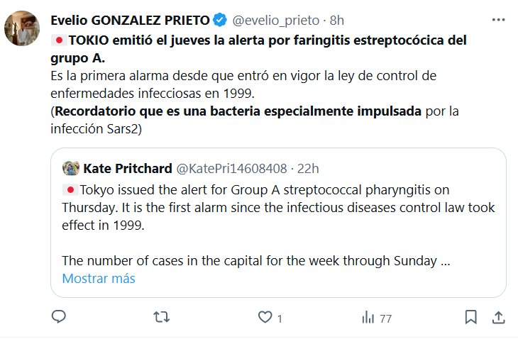 POSTCOVID HACE ESTRAGOS 🇯🇵TOKIO emitió el jueves la alerta por faringitis estreptocócica del grupo A. Es la primera alarma desde que entró en vigor la ley de control de enfermedades infecciosas en 1999. (Recordatorio que es una bacteria especialmente impulsada por la infección Sars2)