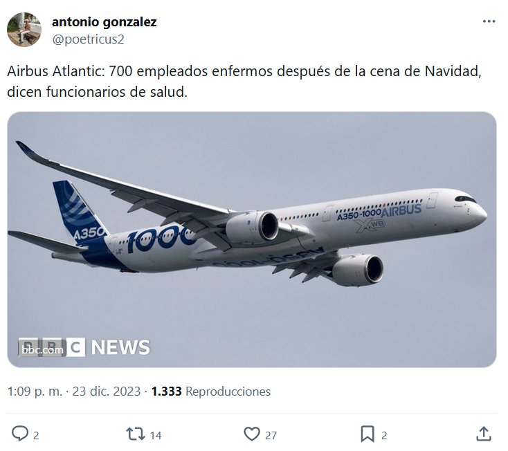 EN PICADA La cena se les fue de las manos…700 empleados enfermos 🤦 Gracias @poetricus2 por compartir : Posted on diciembre 23, 2023 por coronado https://twitter.com/poetricus2/status/1738592687610015989