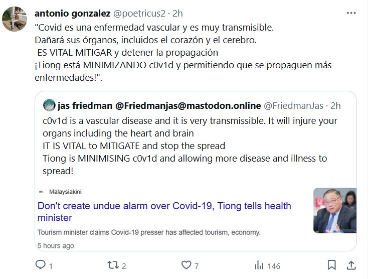 MINISTRO DE MALASIA Covid es una enfermedad vascular y es muy transmisible. Dañará sus órganos, incluidos el corazón y el cerebro. ES VITAL MITIGAR y detener la propagación Posted on diciembre 24, 2023 por coronado
