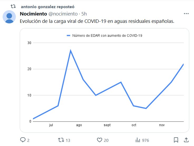 CURVA CRECIENDO A 45º Evolución de la carga viral de COVID-19 en aguas residuales españolas Posted on diciembre 25, 2023 por coronado