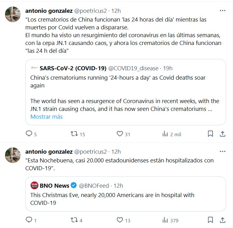 «Esta Nochebuena, casi 20.000 estadounidenses están hospitalizados con COVID-19» | «Los crematorios de China funcionan ‘las 24 horas del día’ mientras las muertes por Covid vuelven a dispararse. El mundo ha visto un resurgimiento del coronavirus en las últimas semanas, con la cepa JN.1 causando caos, y ahora los crematorios de China funcionan «las 24 h del día»