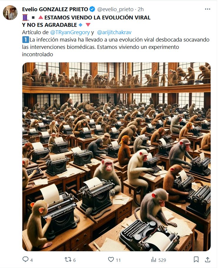 LA MAFIA MEDIÁTICA MUNDIAL ESCRIBIÉNDO AL UNÍSONO: «ES LEVE» ▪️🔺ESTAMOS VIENDO LA EVOLUCIÓN VIRAL Y NO ES AGRADABLE🔹🔻 Artículo de @TRyanGregory y @arijitchakrav 1⃣La infección masiva ha llevado a una evolución viral desbocada socavando las intervenciones biomédicas. Estamos viviendo un experimento incontrolado