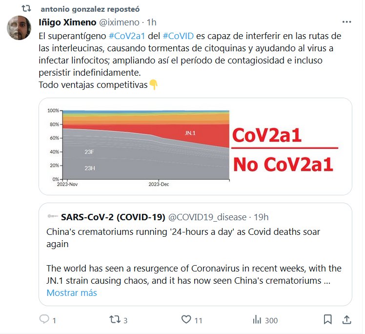 SE ESTÁ CONVIRTIENDO EN UN SUPERVIRUS El superantígeno #CoV2a1 del #CoVID es capaz de interferir en las rutas de las interleucinas, causando tormentas de citoquinas y ayudando al virus a infectar linfocitos; ampliando así el período de contagiosidad e incluso persistir indefinidamente. Todo ventajas competitivas👇