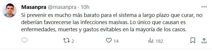 ENTONCES LA PREGUNTA DEL MILLÓN ES ¿POR QUÉ PANDEMIA LIBERADA? Si prevenir es mucho más barato para el sistema a largo plazo que curar, no deberían favorecerse las infecciones masivas. Lo único que causan es enfermedades, muertes y gastos evitables en la mayoría de los casos.