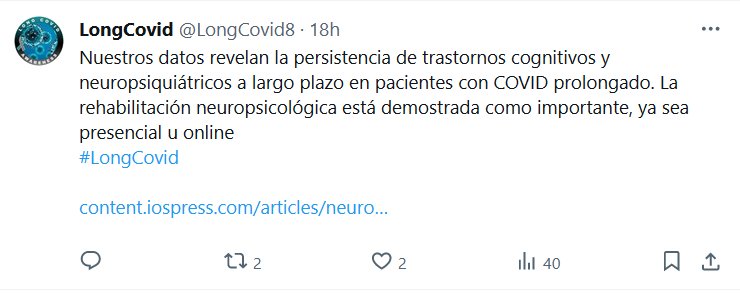 NO ERA LEVE Nuestros datos revelan la persistencia de trastornos cognitivos y neuropsiquiátricos a largo plazo en pacientes con COVID prolongado. La rehabilitación neuropsicológica está demostrada como importante, ya sea presencial u online #LongCovid