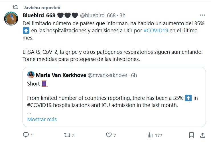 Del limitado número de países que informan, ha habido un aumento del 35% ⬆️ en las hospitalizaciones y admisiones a UCI por #COVID19 en el último mes. El SARS-CoV-2, la gripe y otros patógenos respiratorios siguen aumentando. Tome medidas para protegerse de las infecciones