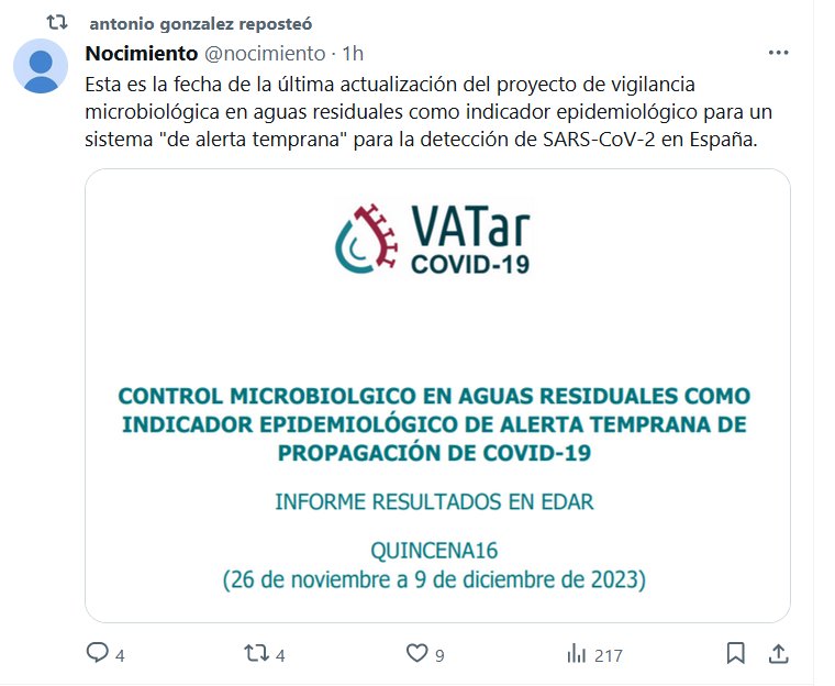 NO ES FIN DE PANDEMIA, ES FIN DE CONTROL Y ESTADÍSTICA Esta es la fecha de la última actualización del proyecto de vigilancia microbiológica en aguas residuales como indicador epidemiológico para un sistema «de alerta temprana» para la detección de SARS-CoV-2 en España