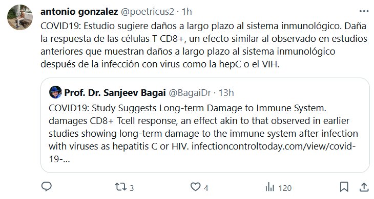 COVID≠GRIPE -> COVID≈SIDA | COVID19: Estudio sugiere daños a largo plazo al sistema inmunológico. Daña la respuesta de las células T CD8+, un efecto similar al observado en estudios anteriores que muestran daños a largo plazo al sistema inmunológico después de la infección con virus como la hepC o el VIH.