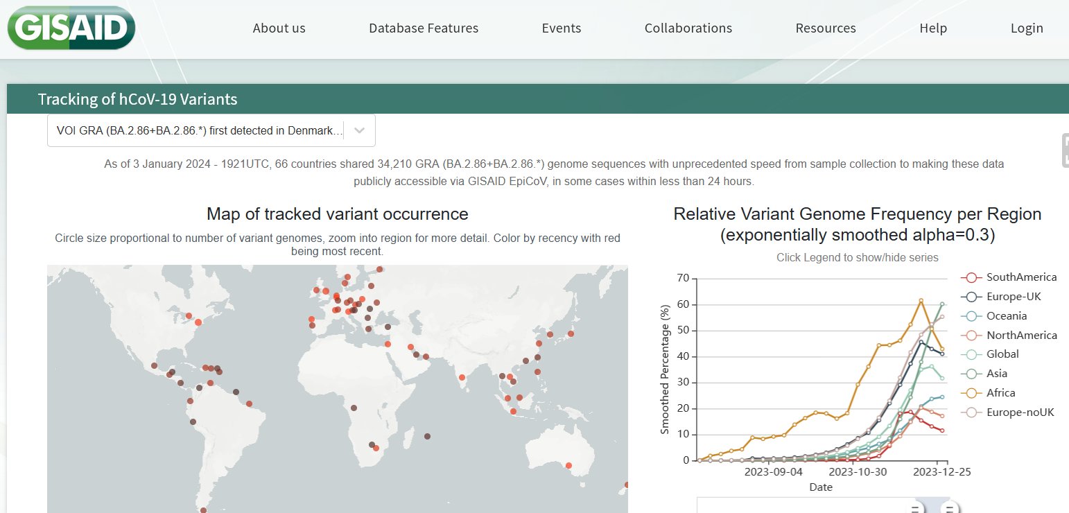 LA PIROLA ESTÁ EN SU APOGEO Y EMPIEZA A CEDER EN ALGUNAS REGIONES, MIENTRAS SU HIJA JN.1 VA CRECIENDO Posted on enero 3, 2024 por coronado EVOLUCIÓN ACTUAL POR REGIÓN DE BA.2.86