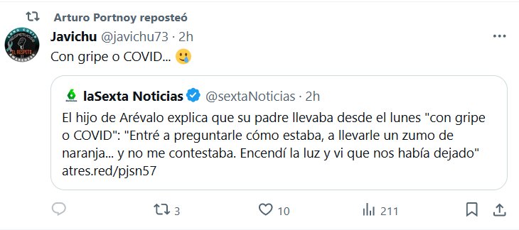 PREGUNTA COVIDIOTA ¿QUÉ SERIA? El hijo de Arévalo explica que su padre llevaba desde el lunes «con gripe o COVID»: «Entré a preguntarle cómo estaba, a llevarle un zumo de naranja… y no me contestaba. Encendí la luz y vi que nos había dejado»