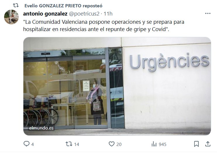 SE PINCHÓ EL GLOBO «La Comunidad Valenciana pospone operaciones y se prepara para hospitalizar en residencias ante el repunte de gripe y Covid» Posted on enero 4, 2024 por coronado