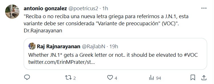 COVID-24 «Reciba o no reciba una nueva letra griega para referirnos a J.N.1, esta variante debe ser considerada «Variante de preocupación» (VOC)». Dr.Rajnarayanan Posted on enero 5, 2024 por coronado