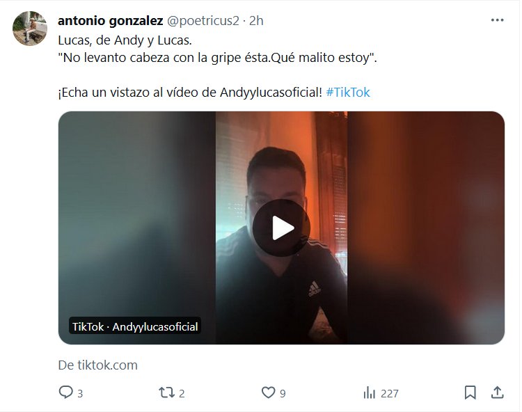 NADIE QUE EDUQUE A LOS COVIDIOTAS? NO ES GRIPE!!! Lucas, de Andy y Lucas. «No levanto cabeza con la gripe ésta.Qué malito estoy». Posted on enero 5, 2024 por coronado https://www.tiktok.com/@andyylucasoficial/video/7320529302607383841?_r=1&_t=8imnPkgztR3