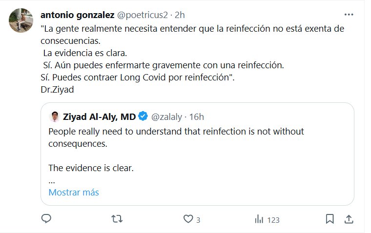 POR EL AMOR DE DIOS ¡CUÍDATE! «La gente realmente necesita entender que la reinfección no está exenta de consecuencias. La evidencia es clara. Sí. Aún puedes enfermarte gravemente con una reinfección. Sí. Puedes contraer Long Covid por reinfección». Dr.Ziyad
